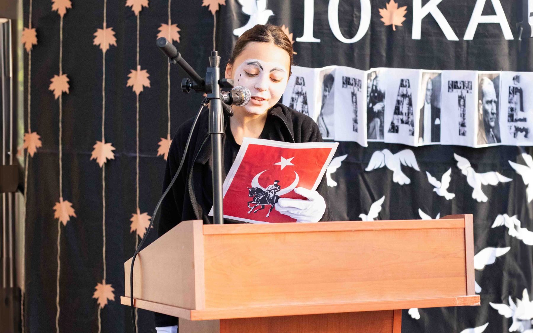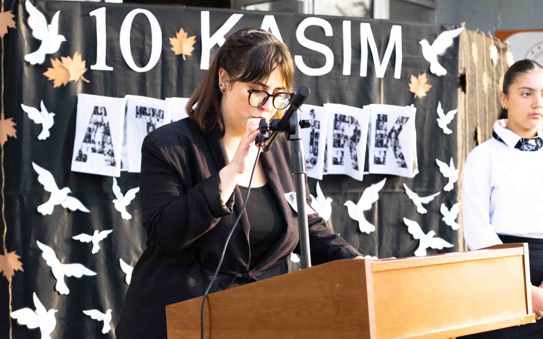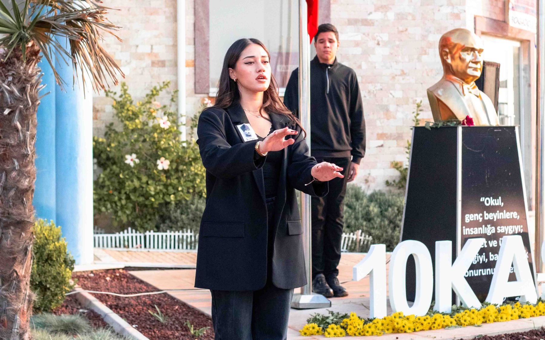 Törende, saat 09.05’te yapılan saygı duruşunun ardından okunan şiirler, konuşmalar ve hazırlanan sunumlarla; Atatürk’ün çağdaş, bilimsel ve akılcı eğitim anlayışının gelecek nesiller için taşıdığı değer bir kez daha hatırlatıldı. Öğrencilerimizin duygu dolu performansları, törene katılanlar tarafından büyük bir dikkat ve saygıyla takip edildi.