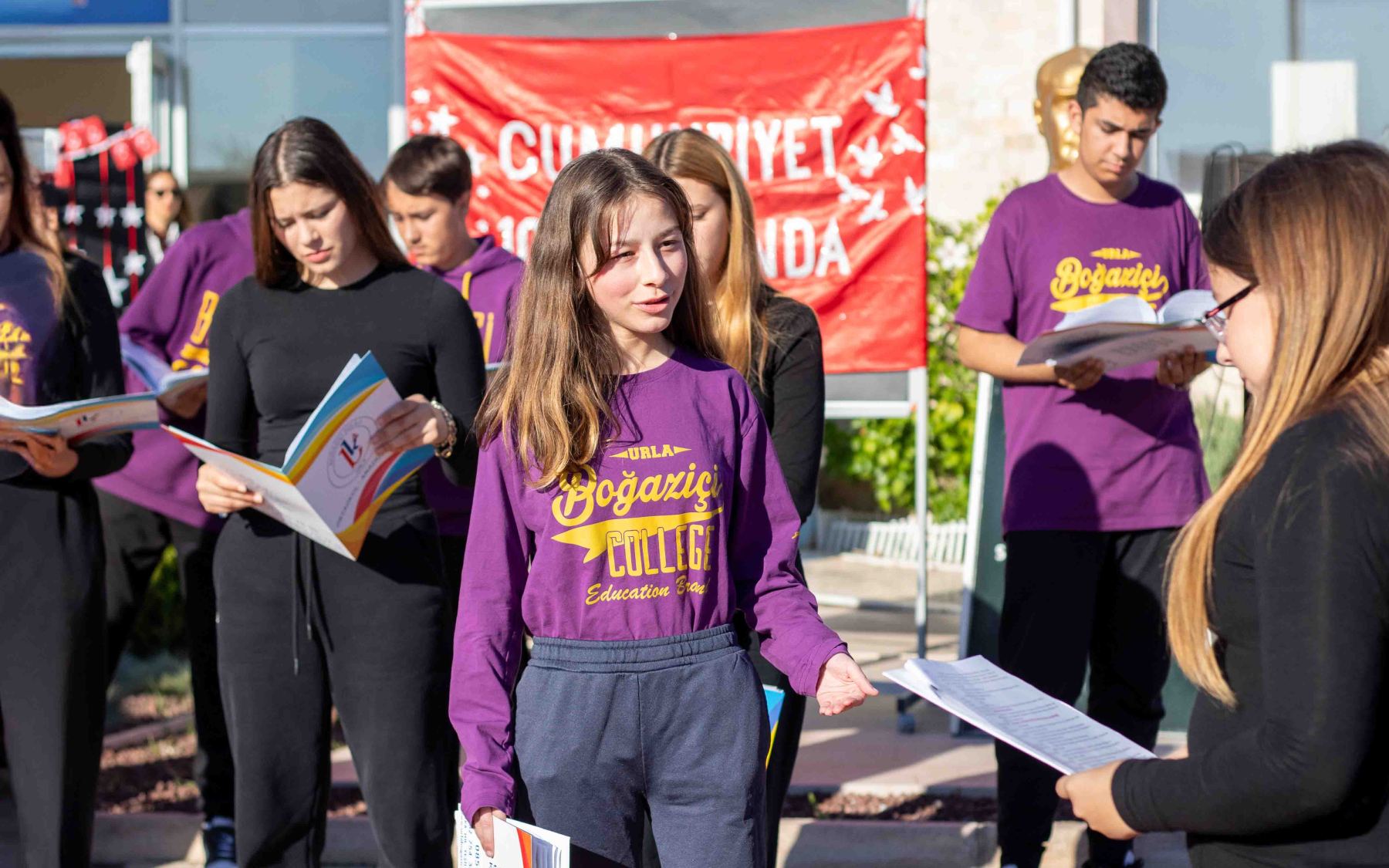 Cumhuriyetin temelinde yer alan özgür düşünce, bilim ve çağdaş eğitim anlayışının, Urla Boğaziçi Koleji’nin eğitim vizyonuyla örtüştüğü ifade edildi. Öğrencilerimizin sergilediği performanslar, izleyiciler tarafından büyük beğeni toplarken; Cumhuriyetin emanet edildiği genç nesillerin taşıdığı sorumluluk duygusu törene damgasını vurdu.